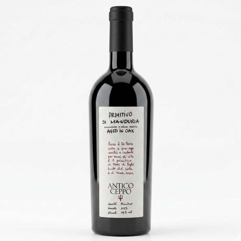 Crafted by Femar Vini from the sun-drenched “red earth” soils of Puglia, Antico Ceppo Primitivo di Manduria is a powerful expression of Southern Italy’s winemaking tradition. The name “Antico Ceppo,” meaning “Ancient Stump,” honors the deep-rooted lineage of the native Primitivo grapes that thrive in the heat and sea breezes of the Manduria DOP.